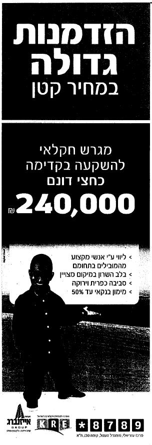 קבוצת אייזנברג (ענף הבניה) החליטה לפרסם את המגרשים שהיא מציעה למכירה. לצורך המשימה הולחט להתמקד בכך שהמחיר הוא נמוך ביחס להשקעה. עד כה הכל בסדר. ישבו וחשבו בחברת הפרסום ובחברת הבניה, כיצד יעבירו את המסר המדובר לקהל הרחב והחליטו כמו חברות רבות אחרות, להשתמש בפליט ריאליטי על מנת לקדם את המוצר. כפי שאתם יכולים לראות (או לראות בצורה יחסית עקב תקלה במכונת הסריקה) , הולחט בסופו של דבר לשים בפלייר שחולק לתושבים רבים, תמונה של אלעד המקסים מהאח הגדול, לצד הכיתוב – "הזדמנות גדולה במחיר קטן".כן רבותיי, היצירתיות חוגגת. לא מדובר על האם זה מעליב או לא, פודע או לא, עובר את גבול המותר או לא, כי ברור שלאף אחד זה לא באמת איכפת, אבל חברים! לאן נעלמה היצירתיות? אנשים איבדו את הראש? זה באמת נראה לכם כמו הדבר הכי טוב שיכלו לעשות בחברת הפרסום המדוברת? הפטריה מרכינה ראש לנוכח המונוטוניות והלעיסות של פרסומות רבות במדיות שונות בארץ. DIGITAL CLOUD הם אלה שאחראים לבזיון הפרסומי והקריאטיבי הזה. הם לא ישלמו על כך ביוקר, אתם תשלמו על כך ביוקר, אם תקנו דירה בפרויקט הזה, בכל מקרה, הייתי מציע לחבר'ה שם להתעורר, לשתות משהו, לעשן משהו, ולחזור מחר בבוקר רעננים יותר.