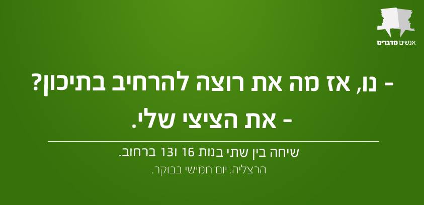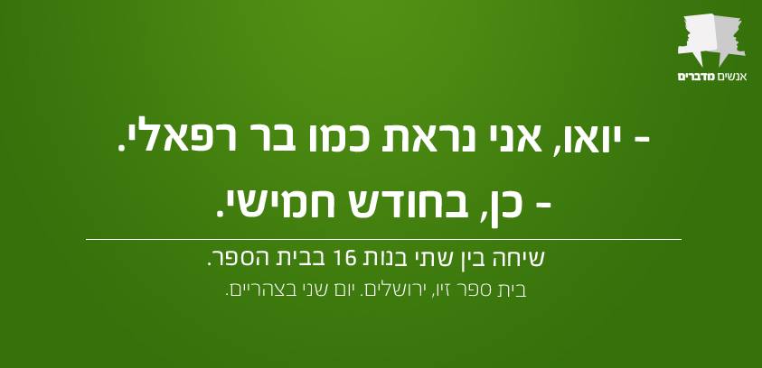אספנו עבורכם 30 משפטים מצחיקים וציטוטים נבחרים מתוך שיחות ישראליות כושלות, מביכות ובעיקר מאוד מצחיקות. אם אתם רוצים עוד אתם מוזמנים לבקר בעמוד הפייסבוק "אנשים מדברים" אליו תוכלו לשלוח גם את אותן שיחות מייאשות שאתם נאלצתם להאזין להם לאחרונה באופן בלתי רצוני.