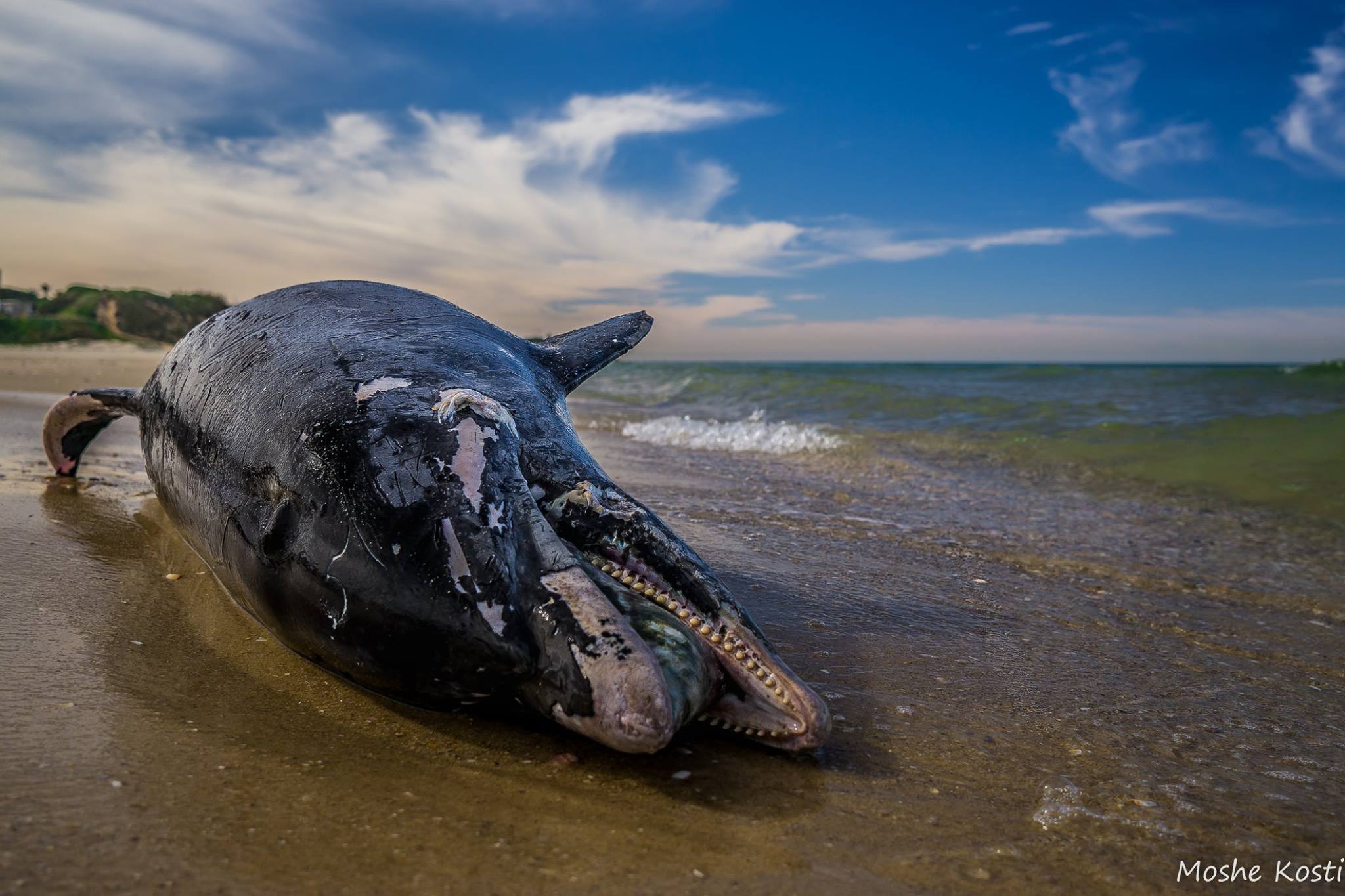 אם לא די בכך, לפני כחודש סיפרנו לכם כאן לראשונה על גופת הדולפין שנמצאה גם היא על ידי קוסטי בחוף פלמחים, בסדרת תמונות עצובה וקורעת לב, עדות אילמת וכואבת לאמת העצובה שמתרחשת מתחת לפני השטח בחוף.