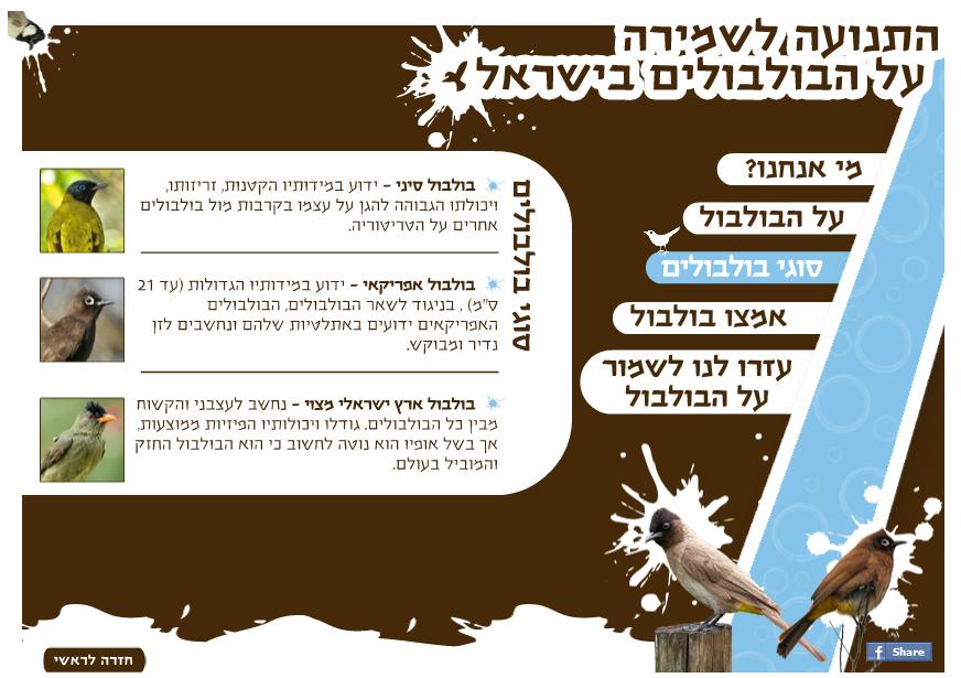בסוף הסרטון מופיע קישור לאתר אינטרנט bulbulim.com . באתר תוכלו להתרשם מסטיקרים הקוראים לכם לשמור על הציפור החמודה, מידע אודות "התנועה לשימור הבולבולים בישראל", אפשרות לאמץ בולבול, ומידע על סוגי הבולבולים השונים.