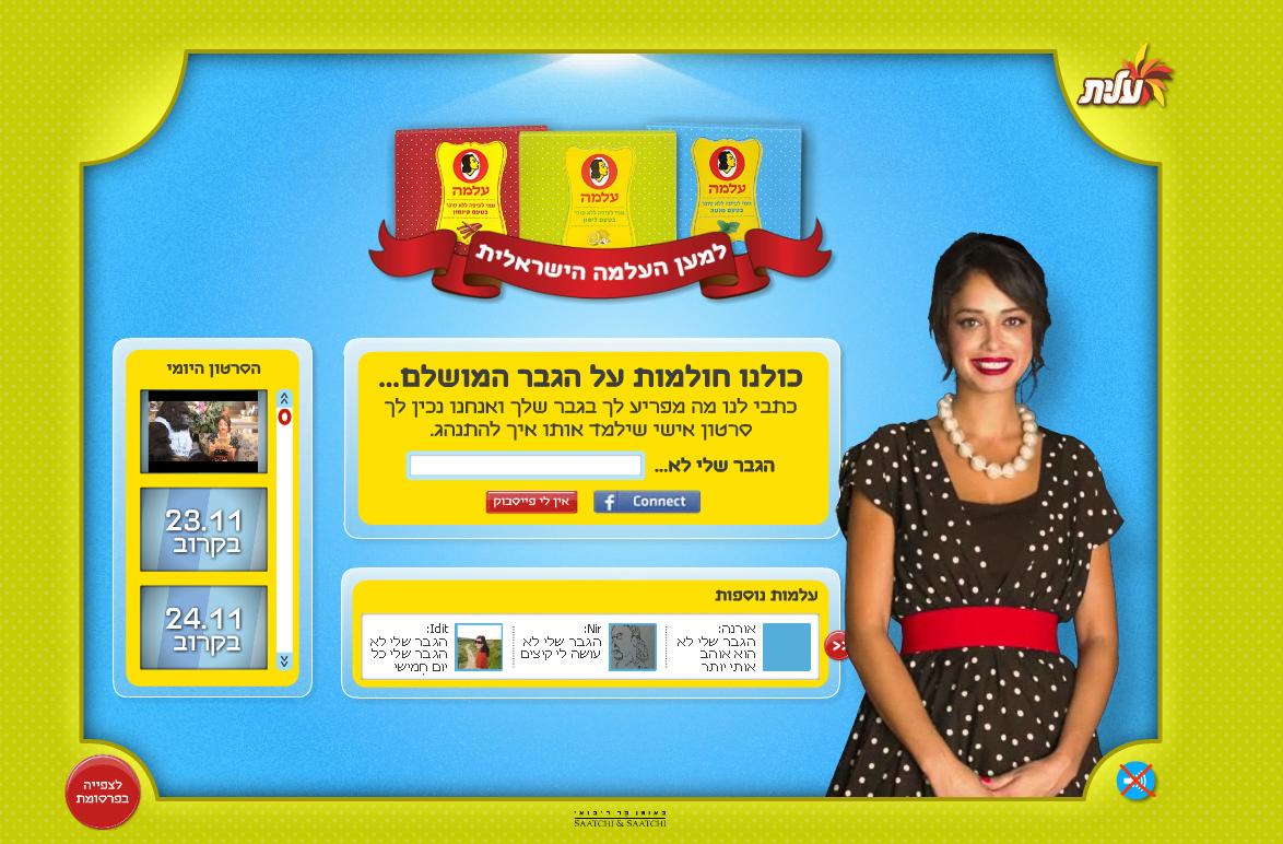 בנוסף, העלו בעלית עמוד נחיתה ייעודי, בו בנות ישראל מתבקשות לכתוב מה מפריע להן בגבר שלהן, ועלית תפיק מההצעות המצחיקות יותר סרטונים נוספים בסדרת הפרסומות של מסטיק עלמה. ובונוס קטן: אם תקליקו חמש פעמים ברצף על ימית סול בעמוד הנחיתה, תחכה לכם הפתעה מטופשת.
