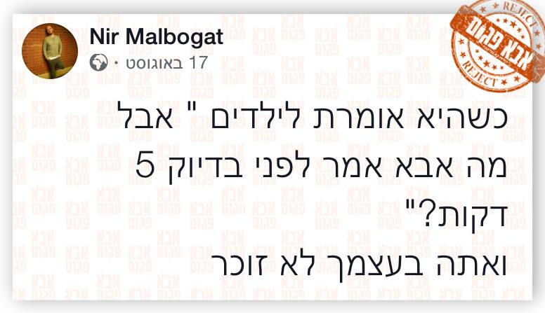 אספנו עבורכם 30 סטטוסים מצחיקים נבחרים של הורים פגומים מתוך העמוד ואם אתם רוצים אתם מוזמנים לבקר בדף הפייסבוק או פרופיל האינסטגרם של אבא פגום. זהירות, אתם עומדים לצחוק הרבה.