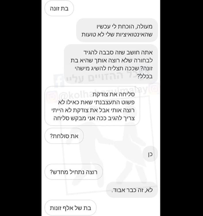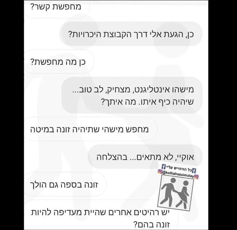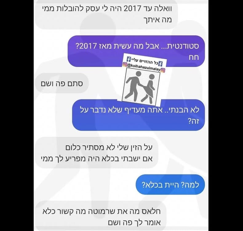 אם אתם מבקרים קבועים באתר שלנו, סביר להניח שאתם יודעים שיש לנו חיבה לעמוד הפייסבוק (והאינסטגרם) של 'כל ההזויים עלי'. למי שלא מכיר, מדובר בעמוד שמציג באופן קבוע הודעות בוטות ופוגעניות שבחורות מקבלות ברשתות החברתיות שלהן מגברים ישראלים, שמצליחים בכל פעם מחדש לעבור את הגבול עם משפטי פתיחה מביכים ומטרידים במיוחד.