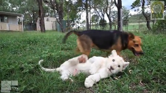 גור אריות לבן מדהים ביופיו בשם 'קוואנזה' וכלב מקסים ששמו 'האני' הפכו להיות חברים הכי טובים ויצרו את החברות הכי חמודה ופוטוגנית שידע גן החיות בקווינסלנד.