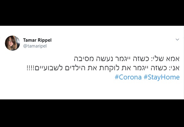 קשה להאמין אבל סיימנו שבוע ראשון של בילוי בבידוד עם הילדים בבית 24/7, שנכפה עלינו בעקבות צעדי משרד הבריאות והממשלה למנוע את התפשטות וירוס הקורונה. המצב כמובן מאוד מאתגר בלשון המעטה וגורם לנו לא פעם לטפס על הקירות ולהעריך מחדש את הגננות והמורים שצריכים להתמודד בכל יום מחדש עם הילדים המתוקים שלנו.