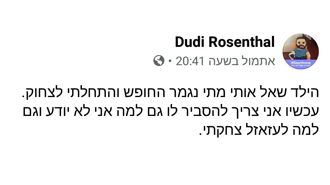 ריכזנו לכם בפוסט 21 בדיחות קורונה מצחיקות שהורים שבורים כתבו על הילדים שלהם בבידוד. אם יש לכם סטטוסים נוספים מוזמנים להוסיף לנו אותם בשרשור התגובות לפוסט. קליק כאן לעוד בדיחות קורונה.