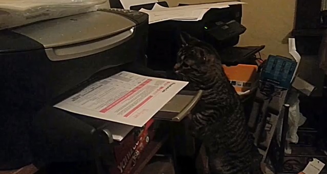 לא לבעלי לב חלש: חתול תוקף באכזריות מדפסת (וידאו)