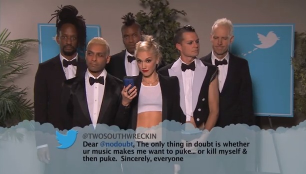 אם מתעלמים לרגע מהאלמנט המעליב, כשהכוכבים עצמם מספרים במערכון של ג'ימי קימל על הציוצים שהעליבו אותם זה פשוט קורע מצחוק. מסתבר שגם לסלבס יש רגשות וחלק מהם אפילו רצו לשגר מסר או סימן חזרה אל המצייץ שפגע בהם. בין הכוכבים תזהו את ריי רומנו (מסתבר שלא כולם אוהבים את ריימונד), ג'סיקה סימפסון, קיד רוק, ג'סיקה אלבה, להקת נו דאוט ועוד. תהנו!