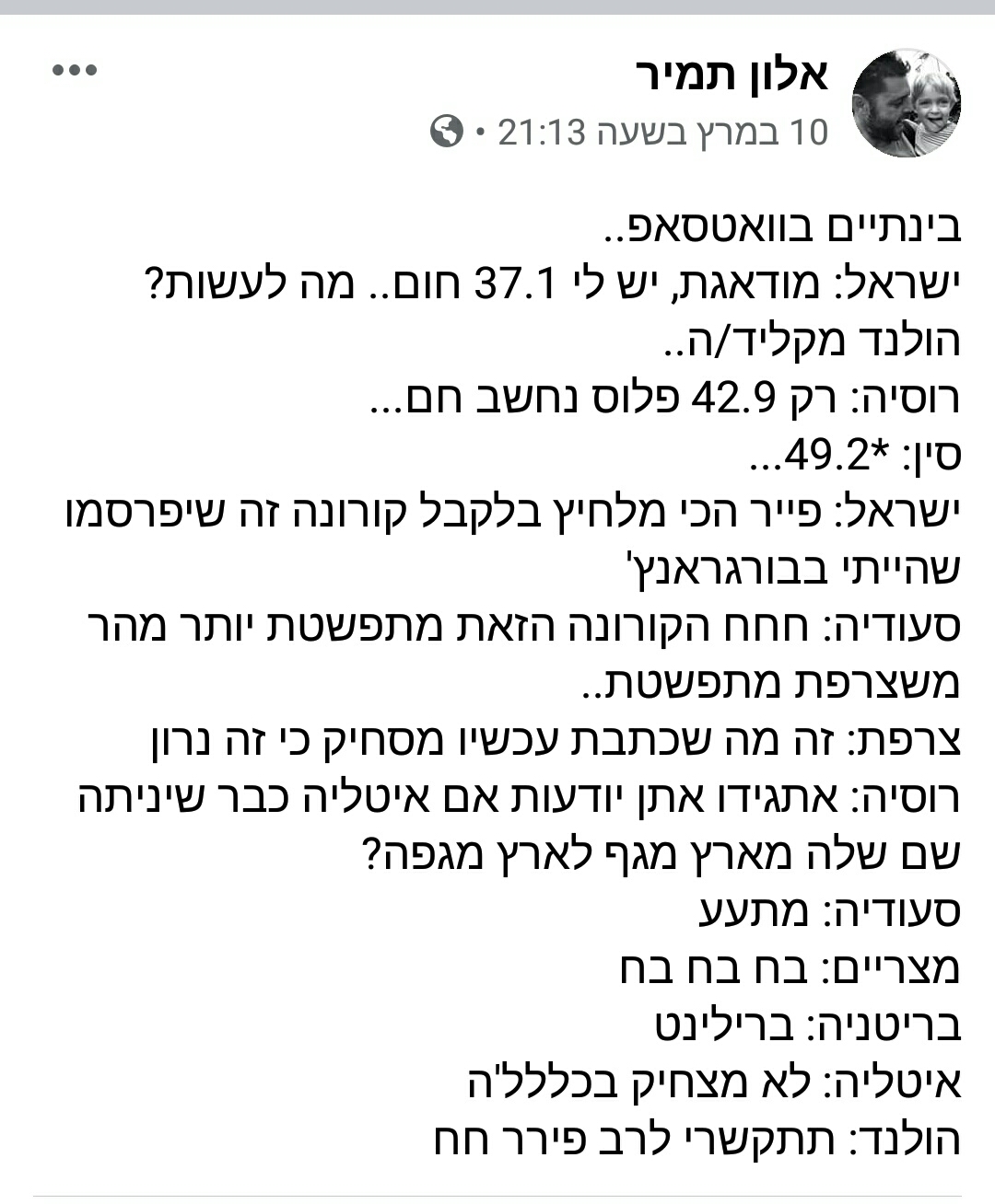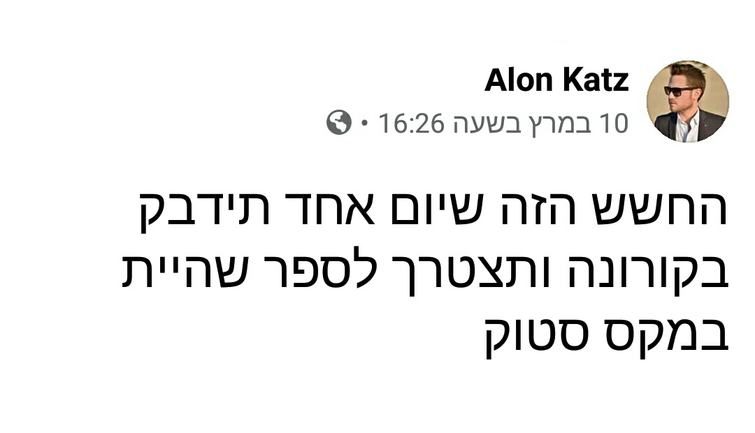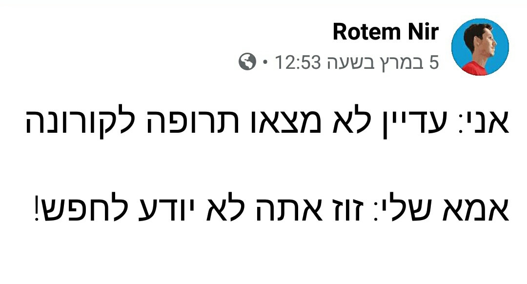 במידה ויש לכם עוד בדיחות קורונה, סטטוסים, תמונות או סרטונים מצחיקים על הקורונה מוזמנים לכתוב לנו אותם בתגובות לפוסט. רק בריאות.