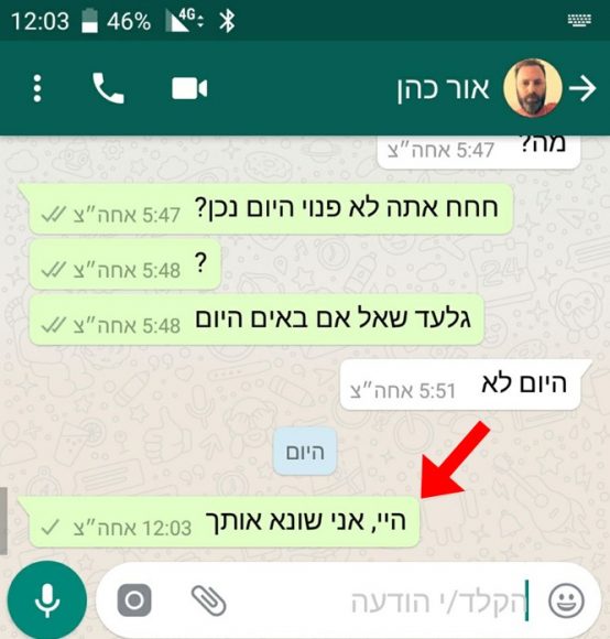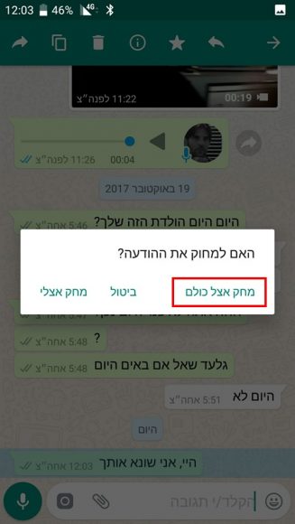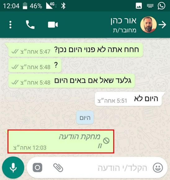 נניח ושלחתם הודעה לחבר/קבוצה והתחרטתם מיד אחר כך (ההודעה המסומנת בחץ)