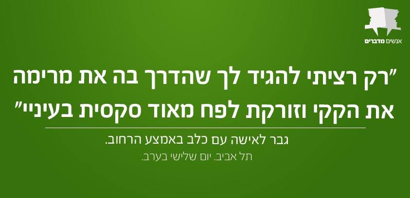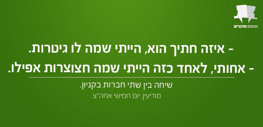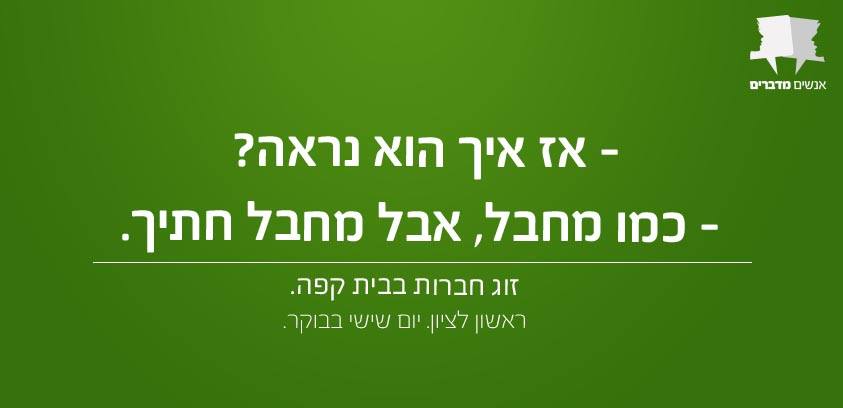 אספנו עבורכם 30 ציטוטים נבחרים נוספים מתוך שיחות ישראליות כושלות, מביכות ובעיקר מאוד מצחיקות. אם אתם רוצים עוד אתם מוזמנים לבקר בעמוד הפייסבוק "אנשים מדברים" אליו תוכלו לשלוח גם את אותן שיחות מייאשות שאתם נאלצתם להאזין להם לאחרונה באופן בלתי רצוני.