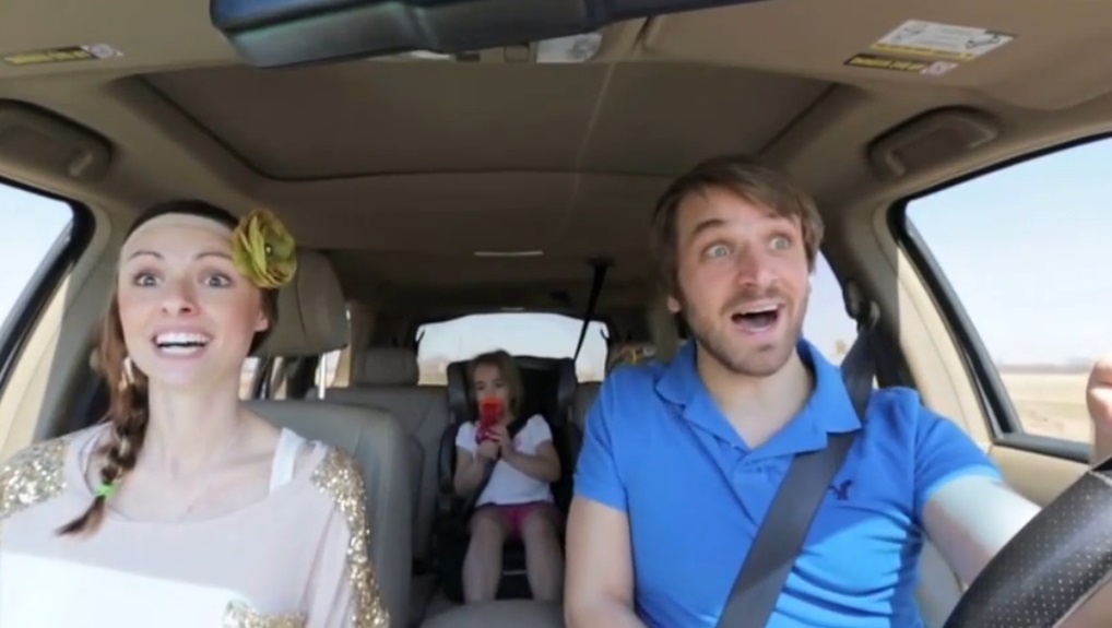 תענוג: זוג הורים מבצעים ליפסינק נפלא בזמן נהיגה לשיר מתוך הסרט פרוזן