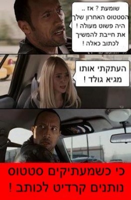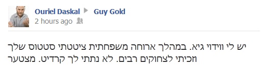 עושה רושם כי ההכרזה על הפינה החדשה רק התניעה את העניינים והייתה המתאבן לאירוע המרכזי. הבוקר, פרסם גולד סטטוס נוסף בנושא בו הוא מציג לראווה הודעה פרטית שקיבל מאחד הגולשים, לאחר שהאחרון העתיק את אחד הסטטוסים שלו. ההודעה המצחיקה-עצובה, מנסה להציג את גולד כמי שמנסה לעורר מהומה על לא מאומה, אך מבליטה את העובדה שגולשים רבים פשוט לא מבינים את המהות של צמד המילים "זכויות יוצרים".
