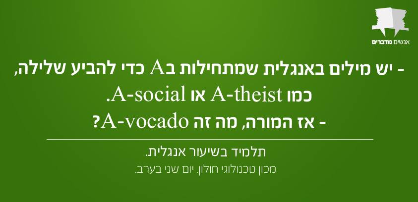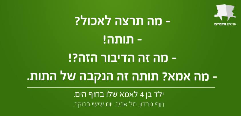 אספנו עבורכם 30 משפטים מצחיקים וציטוטים נבחרים מתוך שיחות ישראליות כושלות, מביכות ובעיקר מאוד מצחיקות. אם אתם רוצים עוד אתם מוזמנים לבקר בעמוד הפייסבוק "אנשים מדברים" אליו תוכלו לשלוח גם את אותן שיחות מייאשות שאתם נאלצתם להאזין להם לאחרונה באופן בלתי רצוני.
