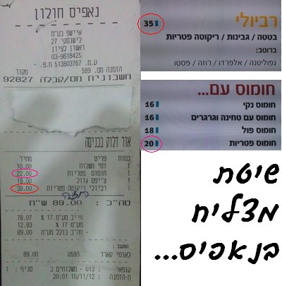 תלונה נגד נאפיס: גובים מחירים גבוהים מאלה המצויינים בתפריט