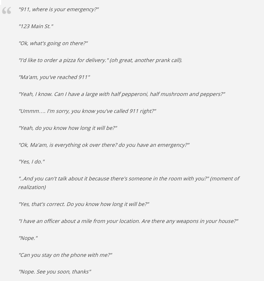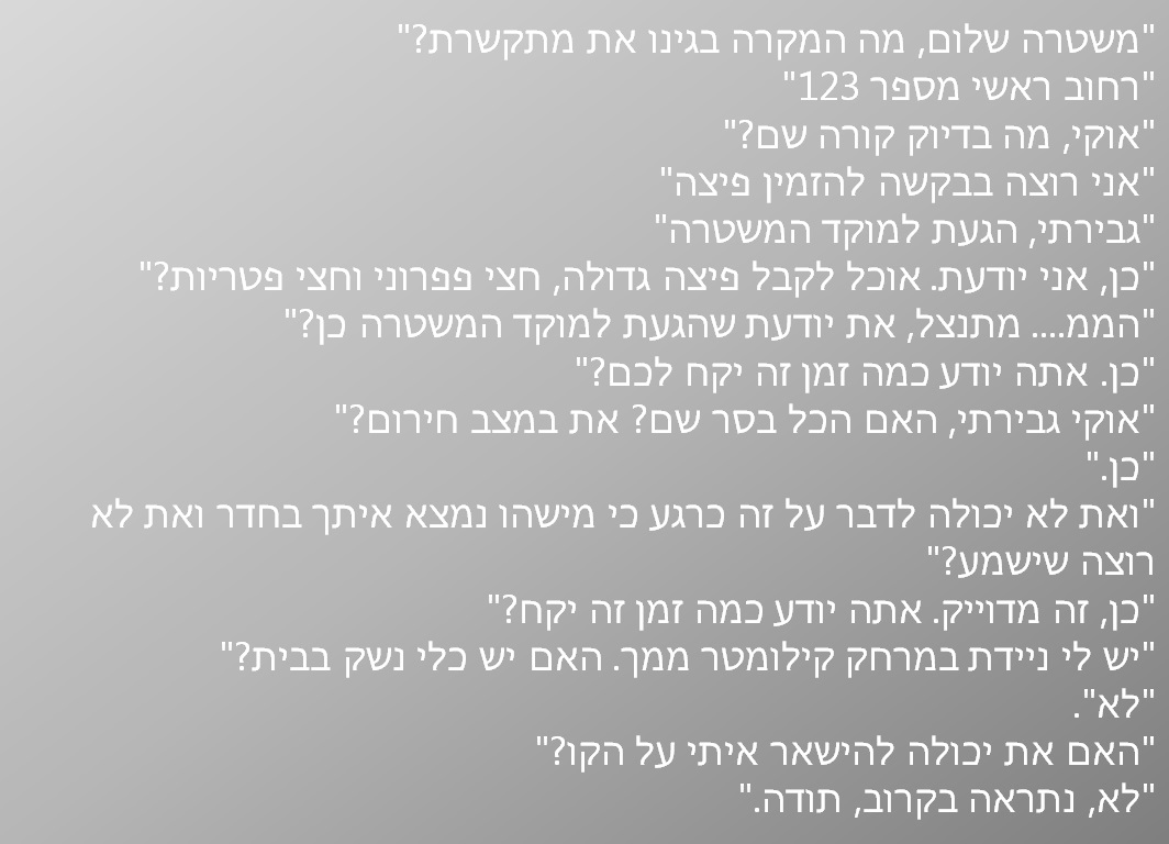 אישה התקשרה למשטרה וביקשה להזמין פיצה כדי לרמוז לשוטרים על מצבה
