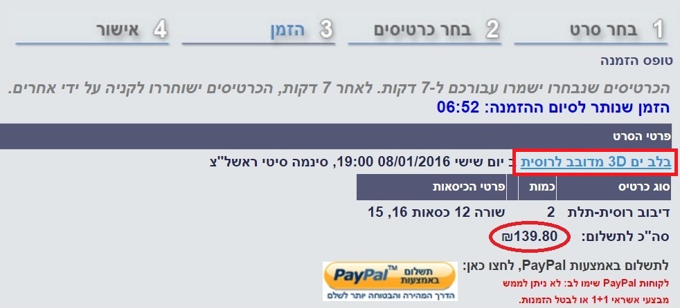 הזמנת זוג כרטיסים לסרט תלת מימד רגיל מול אותו הסרט דיבוב לרוסית