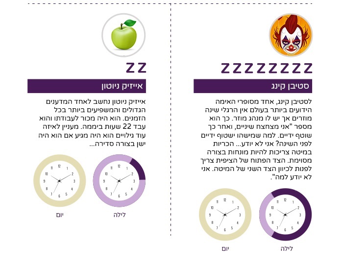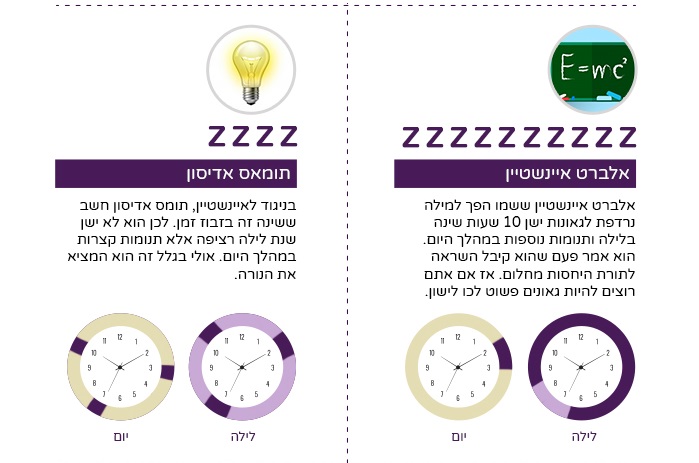 חשבתם פעם איך האנשים ששינו את פני האנושות ישנים? מהם הרגלי השינה של אלברט איינשטיין? כמה שעות ישן בלילה תומס אדיסון? וכמה מכשירי אדים יש סביב המיטה של מריה קארי?