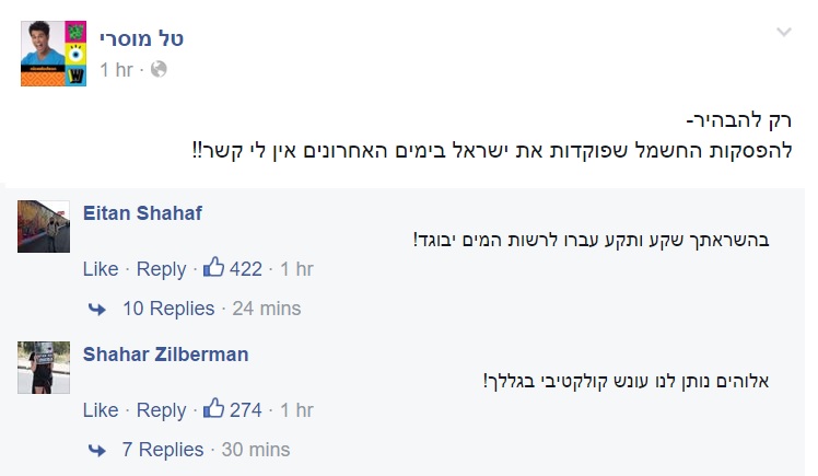 ומה באשר למוסרי? על אף העובדה שכל פוסט שהוא מפרסם גורר מבול של השמצות וביקורות על הבגידה הבלתי נסלחת שלו, נראה שכוכב הילדים לוקח את העניינים בהומור, והיום אף הפגין הומור עצמי כשפרסם סטטוס בו כתב: "רק להבהיר – להפסקות החשמל שפוקדות את ישראל בימים האחרונים אין לי קשר".