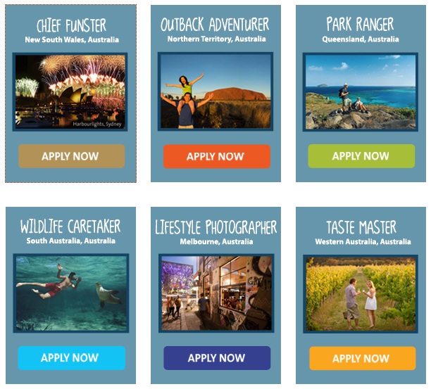 שש המאושרים שיזכו לקבל את המשרות הללו, יזכו בחוזה עבודה לחצי שנה באוסטרליה תמורת סכום לא רע בכלל של 100 אלף דולרים, וכמובן יהנו ממשרות מקוריות במיוחד, משרות שקשה מאוד לסרב להן. אז אילו משרות על הפרק? מה דעתכם להיות צלמי לייף סטייל במלבורן? או אולי 'מנהלי כיף' שאחראים לבדוק ולסקר את המסיבות והאירועים הכי נוצצים בניו סאות' וויילס? אולי בכלל אתם רוצים 'מאסטר טעימות' ולהתמחות בטעימות אוכל ויין, או בכלל להיות שומרי פרא, ולעקוב אחרי חיי הקנגרו בשמורות הטבע? אלה רק חלק ממשרות החלומות המוצעות באתר משרד התיירות האוסטרלי.