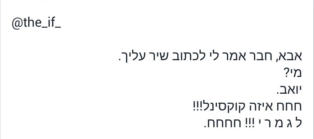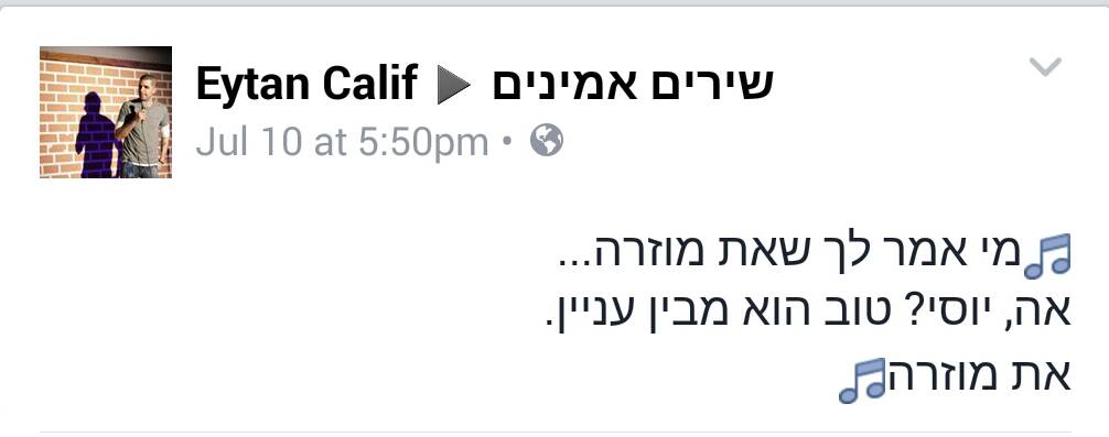 קליק לעוד שירים מצחיקים בעמוד הפייסבוק של שירים אמינים.