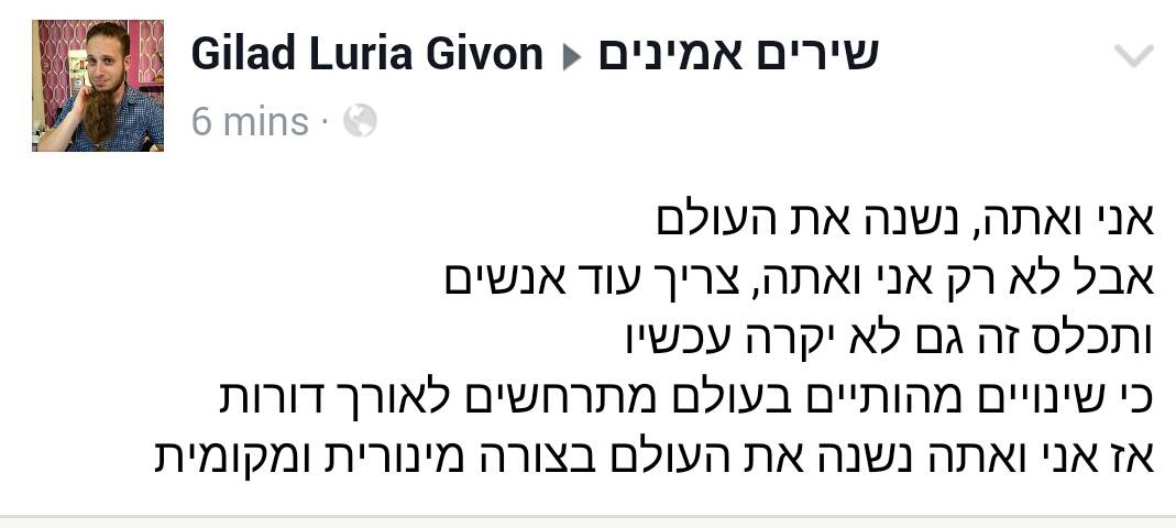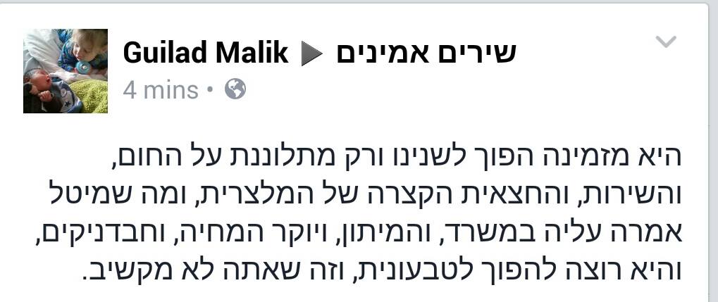 עמוד פייסבוק מצחיק משנה מילים של שירים ישראלים מוכרים כדי שהם יהפכו להגיוניים