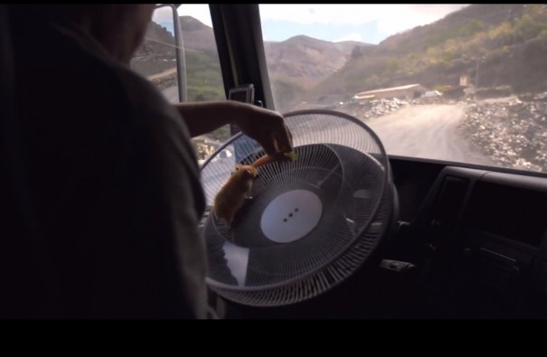 כשמצד אחד הר ומצד שני תהום, על כביש צדדי ומפולת, הוצבה משאית של וולבו. על ההגה הותקנה גלגלת זהה לזו שנמצאת בכלוב של אוגרים, ובה הוצב אוגר. אל האוגר התלווה נהג, שתפקידו העיקרי הוא ללחוץ על הגז, ולנסות לכוון באמצעות גזר את ריצת האוגר על הגלגלת.