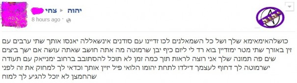 אתמול, פורסמה בעמוד האלוהי צילום מסך של תגובה נזעמת במיוחד שנכתבה על קיר העמוד, על ידי גולש בשם צחי. צחי הביע את תסכולו הרב ולא חסך בקללות דוחות וגזעניות המוכרות לנו מטוקבקים דומים ברחבי הרשת: